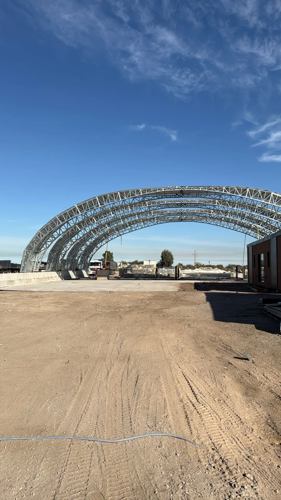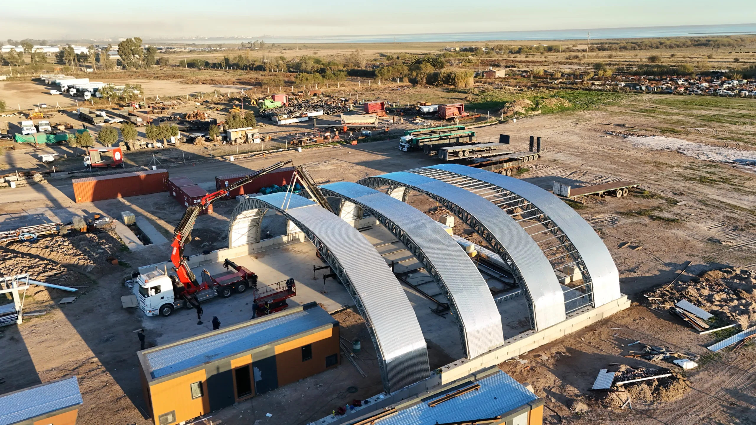 Steelo is proud to deliver a unique modular warehouse engineered entirely with precision roll-formed light gauge steel profiles. The structure will house MYE, S.A. modular construction facility and has itself been designed for modular deployment — preassembled, transported on trucks, and rapidly installed on-site.